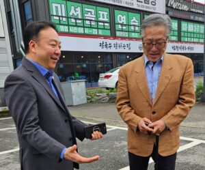 ํ๊ถ๋์ ๋ฐ์์ง์์ ์ญ์ฌ์ ์ธ ํ๋์ด ์ด๋ ธ์ต๋๋ค. ๋ฆญ W. ์ (ํ๋ก ํ๊ถ๋ ์ฐ๋งน ๋ฐ ์ปด๋ฑ ํ๊ถ๋) ํ์ฅ์ด ํ๊ถ๋ ์ฐฝ์์ ์ตํํฌ ์ฅ๊ตฐ์ ์๋ค์ธ ์ต์ ํ(๊ตญ์ ํ๊ถ๋ ์ฐ๋งน) ํ์ฅ์ ๋ง๋ฌ์ต๋๋ค.